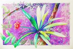 Para Birgitte, a natureza brasileira sempre foi “fascinante”. “Intensa e proporcionadora de grandes fantasias visuais”, explica a artista, que busca mostrar a partir de diversas cores que o “verde pode significar azul, um roxo, um laranja, e vice-versa”, e com isso, consegue transmitir as mais diversas sensações captadas ao longo de inúmeras experiências em meio à mata nativa. Para produzir o trabalho, a artista usou apenas canetas esferográficas coloridas sobre um papel couché brilhante. São traços delicados que penetram o imaginário do público, e auxiliam para que o mesmo “abra o seu coração quanto à importância da Mata Atlântica e da beleza natural da terra paranaense e brasileira”, conta Birgitte.