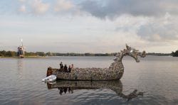 Maria Koijck é artista plástica e utiliza material de reciclagem para produzir suas esculturas. Suas obras colaborativas estão em diversas partes do mundo, sempre com o intuito de questionar o consumo e a responsabilidade pelos resíduos.