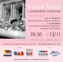 No próximo dia 13 de Novembro, às 19h30, na Sede da OAB PR, Rua Brasilino de Moura, 426, na Sala TED acontece o bate papo sobre a obra da fotógrafa Vivian Maier e Ppropriedade Intelectual.