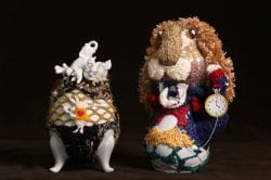 Coisas de Alice mantém o lúdico nos bordados sem regras, as māos conduzem os fios nos traçados, contornados por desenhos coloridos de aparência delicada e sensível suplantando o crochê aprisionador. Aquece a porcelana envolvida por fios, que guarda em seu interior os sonhos e desejos do feminino, a força e o poder transformador da mulher contemporânea que transforma o amor romântico em um amor possível sem a imposição da posse; dona soberana de sua sexualidade; respeitada em seu ir e vir e aceita como ser que evolui. Generosa e sábia em suas decisões, não abre mão de ser protagonista de sua própria vida tecendo de retalho em retalho sua história fantástica no mundo real.
