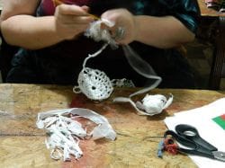 Legenda: A artista Carla Schwab elaborando a sua obra.