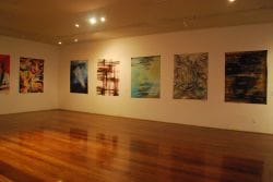 Legenda: Vista geral da Galeria de Arte Muncipal, com a exposição montada.