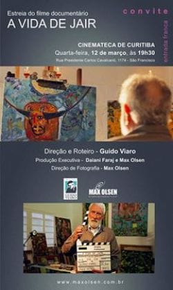 O lançamento do documentário “…A Vida de Jair”, dirigido por Guido Viaro, sobre a vida e obra do artista plástico Jair Mendes será lançado na Cinemateca de Curitiba