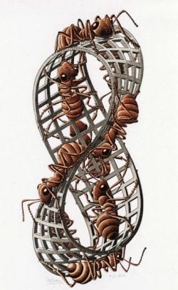 Legenda: Fita de Moebius II (formigas) / Moebius band II (ants) 1963 xilogravura / woodcut  45,3 x 20,5 cm