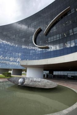 Sobre Nácar, Justiça Capital e Trabalho é o título da escultura de Anna Bella Geiger recentemente instalada em frente ao prédio do Superior Tribunal do Trabalho, um dos últimos projetos do arquiteto Oscar Niemeyer, em Brasília.