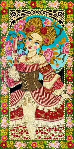 Andréa já começou a sentir a arte desde cedo. De família numerosa e alegre, natural de Luzerna, interior de Santa Catarina, a artista sempre foi incentivada a mostrar seu talento. As habilidades manuais e com a música, aos poucos, foram sendo aperfeiçoadas, e o que era apenas diversão tornou-se profissão ao iniciar sua carreira como cantora e ilustradora. Hoje, trabalha com a técnica mosaico de tinta, com traços estilizados em formato de pequenas esferas em alto relevo sobre estruturas em madeira. Tenho por missão levar a alegria e a harmonia através das cores, fazendo com que a arte cumpra sua função de transformar por meio do belo, define.