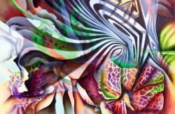 Segundo a Física Quântica, tudo é partícula e onda ao mesmo tempo. Entrando nesse Universo de como as ondas de energia nos envolvem, seja no inconsciente da pintura, no pensamento ou na música; a artista apresenta sua arte simultaneamente a um som binaural, de autoria de Eugênio Fim, que interfere nessa mostra de maneira única.