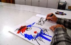 Visitar a exposição de um dos mais reconhecidos e autênticos artistas paranaense e sair levando um pouquinho de sua arte para casa. Em nova mostra, que entra em cartaz no dia 4 de Dezembro no Beto Batata Barigüi, além de apresentar uma séria composta por 20 desenhos inéditos, Rogério Dias também realiza uma sessão de autógrafos do livro Ave, Rogério. Como o artista tem o costume de também desenhar – ou rabiscar, como costuma dizer – juntamente com o autógrafo, cada livro se torna um exemplar único. “Gosto de preencher os espaços em branco, dar mais cor e vida ao papel”, conta. Lançado em 2013 e assinado pela jornalista Adélia Lopes, o livro reúne imagens e histórias de sua trajetória como pintor, desenhista, designer gráfico, ator, publicitário e ilustrador.