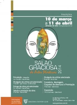 Inicia no dia 10 de Março o período de inscrições para o Salão Graciosa de Artes Plásticas 2014, que chega a sua 16ª edição consagrado como um dos importantes eventos de incentivo à produção cultural na cidade. Os artistas interessados tem até o dia 11 de Abril para realizar sua inscrição por meio do site do Graciosa Country Club – www.graciosa.com.br. Para formalizar a inscrição é necessário apresentar a ficha de inscrição assinada, fotocópia do RG e do CPF e um dossiê do artista, com fotografias das três obras para pré-seleção, na secretaria geral do clube.