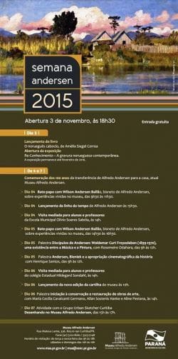 A Semana Andersen, que este ano tem o patrocínio do escritório Andersen Ballão Advocacia, é promovida, todos os anos, na primeira semana de novembro e celebra o nascimento de Alfredo Andersen, artista norueguês que é considerado pai da pintura paranaense. A programação que acontece entre os dias 4 e 7 de Novembro inclui um bate-papo especial com o bisneto de Alfredo Andersen, Wilson José Andersen Ballão, que falará sobre as experiências vividas no museu, além de palestras, visitas mediadas para alunos e professores de escolas estaduais e municipais, lançamento da nova cartilha do museu.