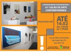 Artigo 4º – Para participar do Salão de Arte Contemporânea o artista deverá promover sua inscrição, de 4 de dezembro de 2012 a 16 de fevereiro de 2013, na Casa do Olhar Luiz Sacilotto, à Rua Campos Sales, 414, Centro, em Santo André (CEP 09015-200), pessoalmente ou por meio dos Correios, respeitando o período impresso na ficha de inscrição. Apenas as inscrições postadas até a data limite serão recebidas.